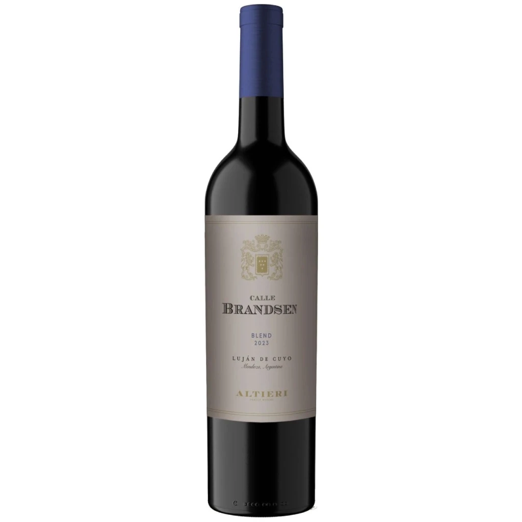 Este Calle Brandsen Blend 2023 es un tinto de Altieri Wines que rinde homenaje a la tradición vitivinícola de la zona. Es un Blend elaborado por las winemakers Angelina Altieri y Evelin Colchad, proveniente de Perdriel, Luján de Cuyo, a 950 msnm.